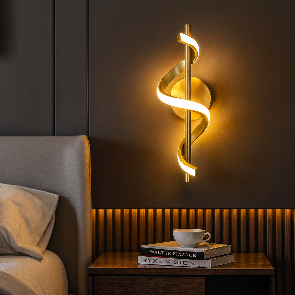 Solis Swirl LED Wall Lamp – Modern Artistic Spiral Design in Gold Finish